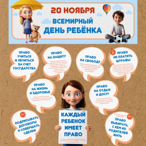 Всемирный день прав ребенка отмечается ежегодно 20 ноября. Дата не случайна – именно в этот день в 1989 году была принята «Конвенция о правах ребенка», которая признала, что ребенку для всестороннего и гармоничного развития личности необходимо расти в семейном окружении, атмосфере счастья, любви и взаимопонимания.